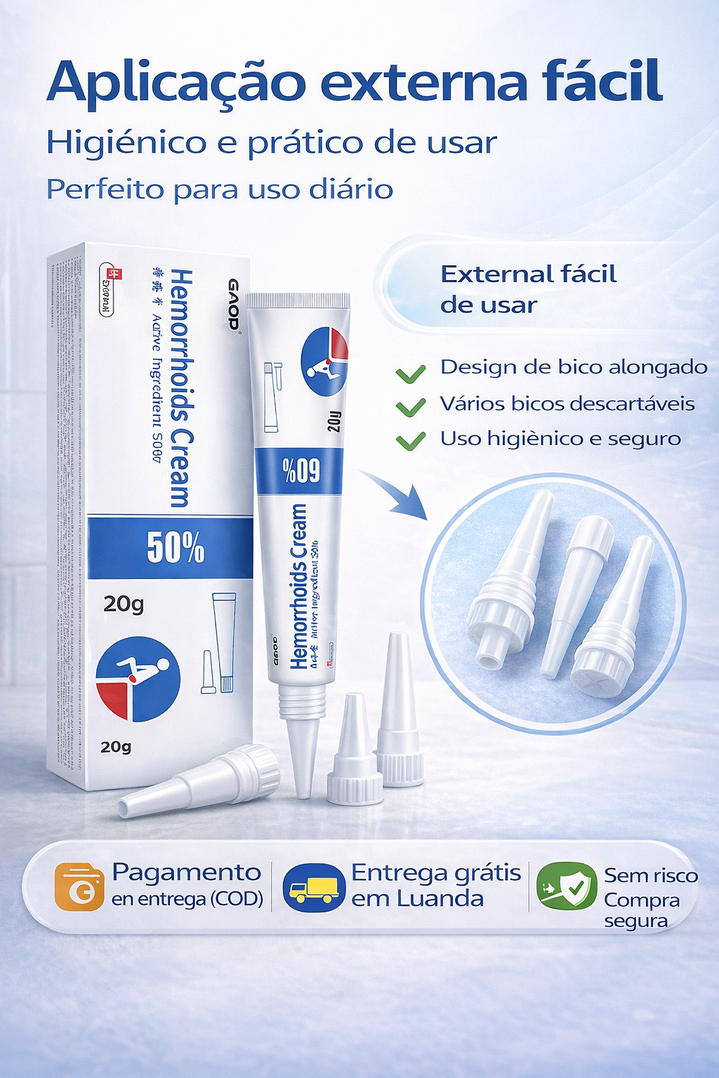 💥 Creme para Hemorroidas GAOD 20g ✨ Alívio Rápido, Coceira e Dor 🚚 Entrega Grátis em Luanda 💳 COD Disponível